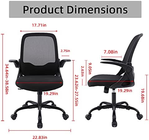 Sytas Office Chair Ergonomic Small Desk Chair Rolling Swivel Mesh Computer Task Chair with Flip-up Arms and Adjustable Height,for Adults and Kids,Black