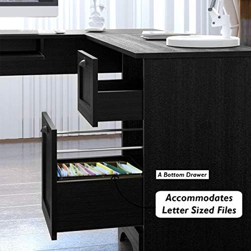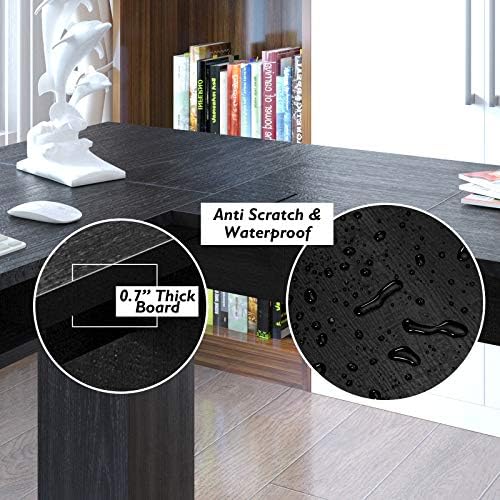 【Modern & Classic Appearance】L-shape corner desk with black glossy finish can perfectly complement with other home décor and highlight traditional and the modernistic perfect fusion repair and the arrangement. Works well as computer desk, study writing table, home office desk.