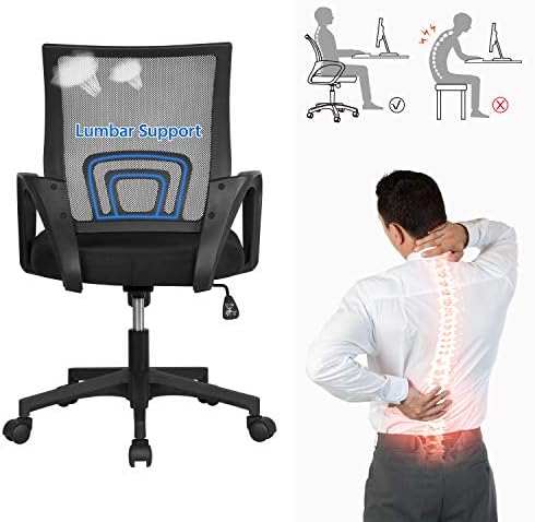【BREATHABLE MID-BACK DESIGN】Featuring densely knitted mesh backrest, this mesh office chair allows better airflow, accelerating heat and moisture dissipation. Mid-back design supports your spine’s natural curve and protects your lower and middle back as it prompts you to sit straight.