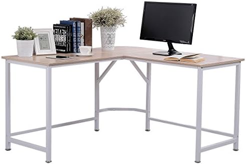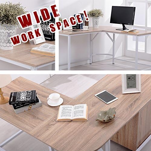 TOPSKY L-Shaped Desk Corner Computer Desk 55″ x 55″ with 24″ Deep Workstation Bevel Edge Design (Oak)