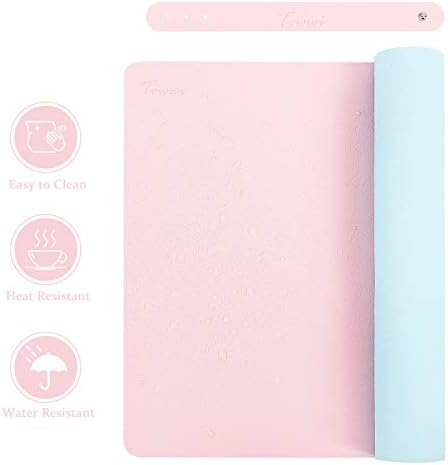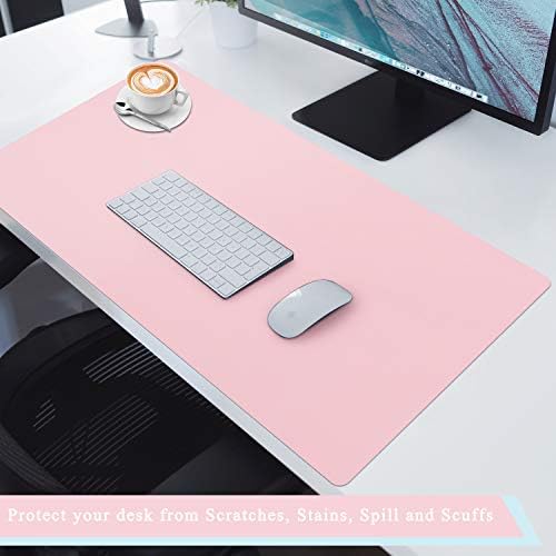 TOWWI Dual Sided Desk Pad, 36″ x 17″ PU Leather Desk Mat, Waterproof Desk Blotter Protector Mouse Pad (Blue/Pink)