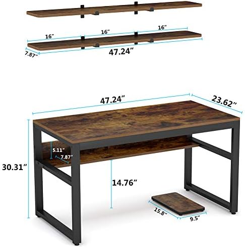 Price: (as of – Details) Product Description Specifications: Safe Material: E1 Class Particle Board + Thicker Steel Color: Rustic Brown Computer Size: 47.24″(W) x 23.6″(D) x 30.31″(H) Floating Shelf: 47.24″(W) x 7.87″(D) Package: Desk + Floating Shelf + Host Shelf Assemble Required: Yes Weight:68.2lb Tribesigns Rustic Computer Desk with Hutch Bookshelf Practical Simple Design, Comfortable