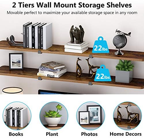 [2 Floating Shelf Design】- Come with 2 large floating wall mounted storage shelves, which offer extra space to hold your books, photos, vases, plants and other trinkets, help to reduce clutter in a small room. You can also group the floating shelves together or hang them separately, very convenient and space saving