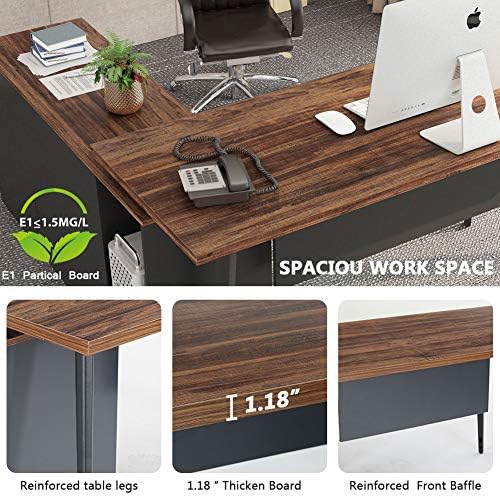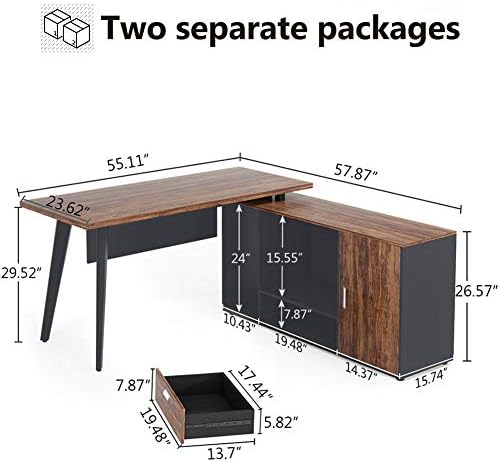 Price: (as of – Details) Product Description Tribesigns L-Shaped Desk, Executive Office Desk Computer Table Workstation with Storage, Business Furniture with File Cabinet Material: E1 Class Particle Board + Thicker Steel Color: Dark Vintage Finsh + Charcoal GreayMetal Frame Desk Size: 55″ *24*30″(L*W*H) Cabine Size:47″ *15″ *26″(L *W*H) With its simple silhouette and Modern L-shaped