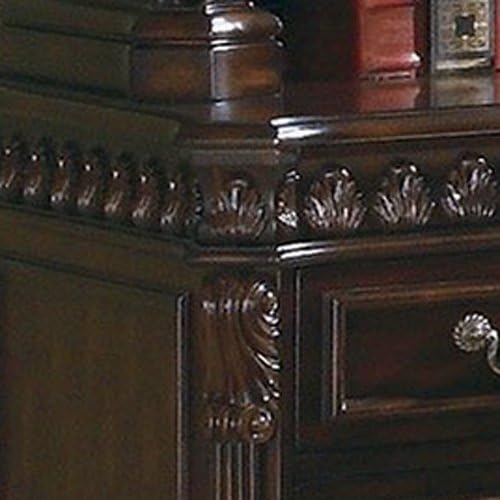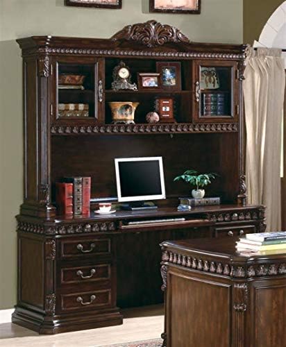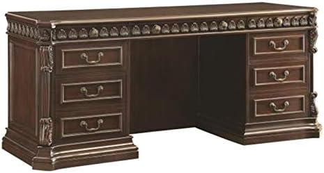 Price: (as of – Details) Instantly upgrade your living space with luxurious opulence. This exquisite credenza desk boasts a stunningly posh aesthetic. It comes complete with a built-in power outlet and a variety of shelves for convenient storage space. A rich, brown finish enhances its elegant silhouette. With elaborate carvings and fluted details, this piece