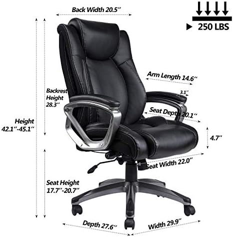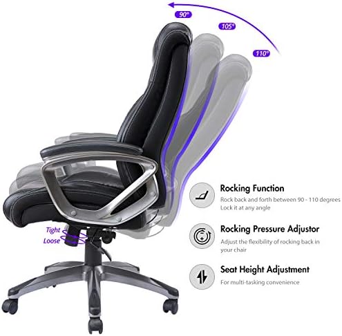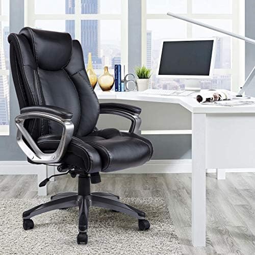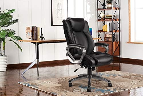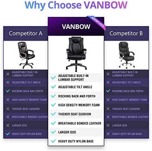 VANBOW Leather Memory Foam Office Chair – Adjustable Lumbar Support Knob and Tilt Angle High Back Executive Computer Desk Chair, Thick Padding for Comfort Ergonomic Design for Lumbar Support, Black