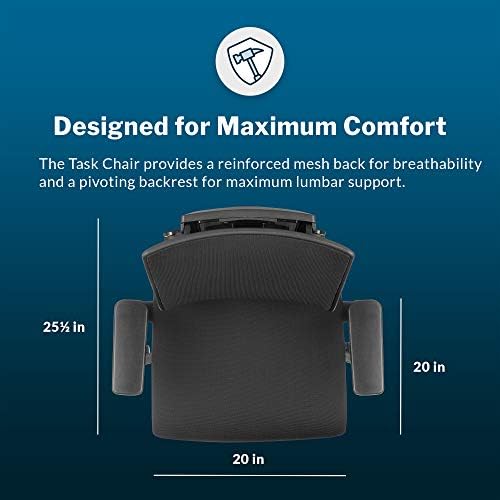 The Task Chair gives you the comfort and support you need to do your best work. It features a reinforced mesh back for breathability and a pivoting ergonomic backrest for maximum lumbar support. With multiple adjustable settings, no-tool assembly, and casters that work on carpet or wood floors, it’s a simple, flexible addition to any workspace.
