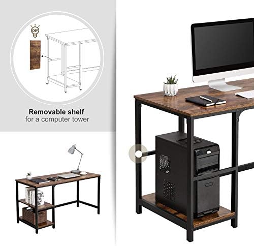 VASAGLE ALINRU Computer Desk, 55.1-Inch Long Home Office Desk for Study, Writing Desk with 2 Shelves on Left or Right, Steel Frame, Industrial, Rustic Brown and Black ULWD55X