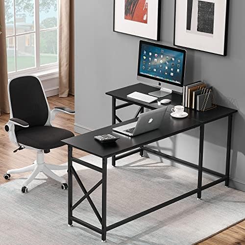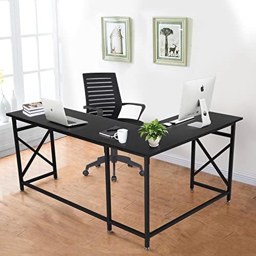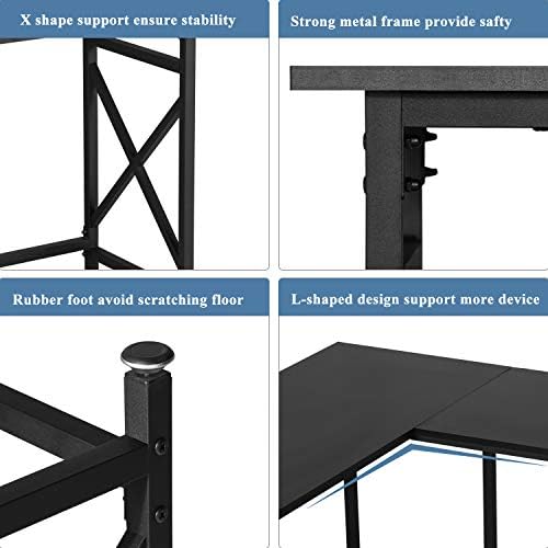 VECELO Modern L-Shaped Desk with CPU Stand/PC Laptop Study Writing Table Workstation for Home Office Wood & Metal,Black