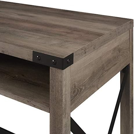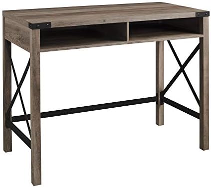 Walker Edison Callum Modern Farmhouse Metal X Writing Desk, 42 Inch, Grey Wash
