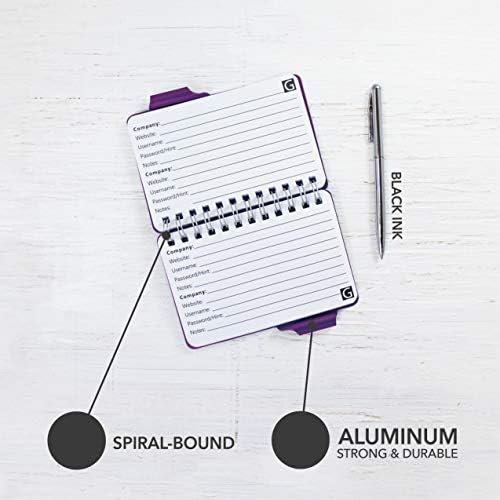 Price: (as of – Details) Password Books have a spiral-bound metal case with retractable pen. Each book has 70 alphabetical address sheets. Small size is perfect for purses and computer bags A low-tech solution for forgotten passwords!Convenient size of 3.5″ x 4.5″ to fit in purses and computer bags70 alphabetical pages with lines for website