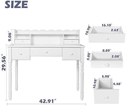 White Writing Desk with Detachable Hutch& 5 Drawers,Modern Computer Workstation for Home Office,Vanity Table