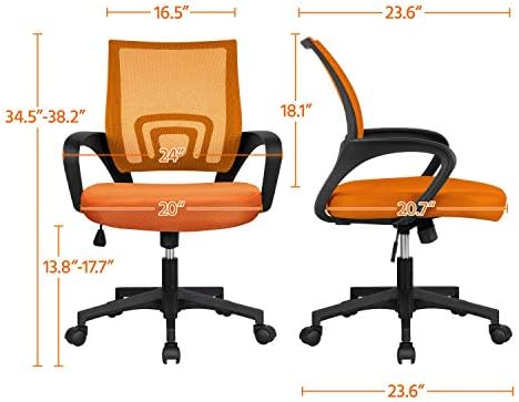 【BREATHABLE MID-BACK DESIGN】Featuring densely knitted mesh backrest, this mesh office chair allows better airflow, accelerating heat and moisture dissipation. Mid-back design supports your spine’s natural curve and protects your lower and middle back as it prompts you to sit straight.