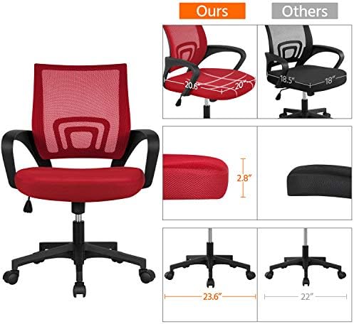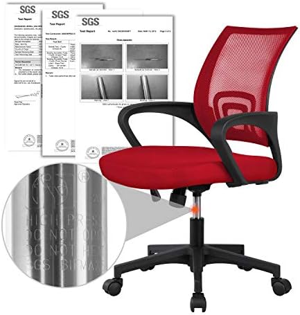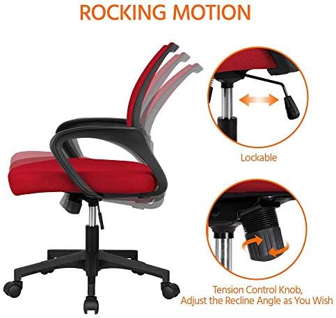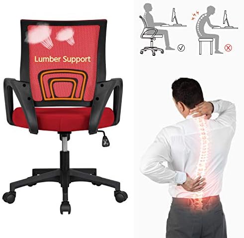 Yaheetech Ergonomic Mesh Office Chair Mid-Back Height Adjustable Computer Chair w/Lumbar Support & 360° Rolling Casters 276lb Weight Capacity Red
