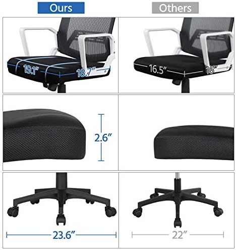 Breathable mid-back design: This mesh office chair features densely knitted mesh backrest, which allows better airflow and breathability, accelerates heat and moisture dissipation. Curved mid-back design supports your spine’s natural curve and protects your lower and middle back as it prompts you to sit straight.