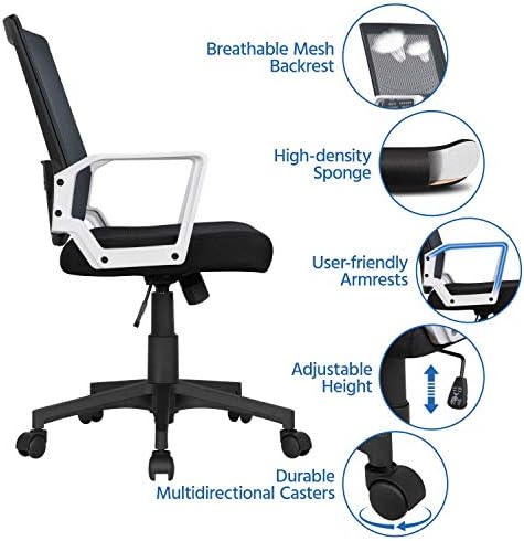 Price: (as of – Details) Product Description A good office chair can be beneficial to a productive workday. Our 360° swivel ergonomic mid-back chair is your most cost-effective choice for office and home. Soft sponge padded seat and breathable mesh backrest give you a cool and comfy seating experience even during the hot weather. Curved