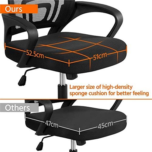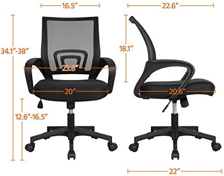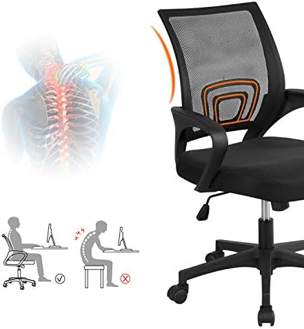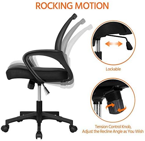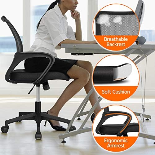 【BREATHABLE MID-BACK DESIGN】Featuring densely knitted mesh backrest, this mesh office chair allows better airflow, accelerating heat and moisture dissipation. Mid-back design supports your spine’s natural curve and protects your lower and middle back as it prompts you to sit straight.