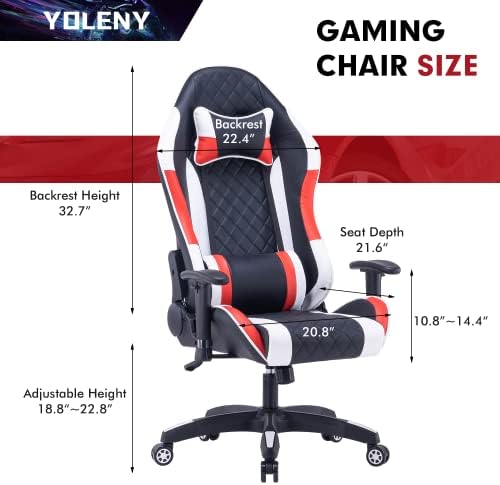 YOLENY Gaming Chair Computer Game Chair Office Chair Ergonomic High Back PC Desk Chair, Height Adjustment Swivel Rocker with Headrest and Support Lumbar Pillow, Red Black